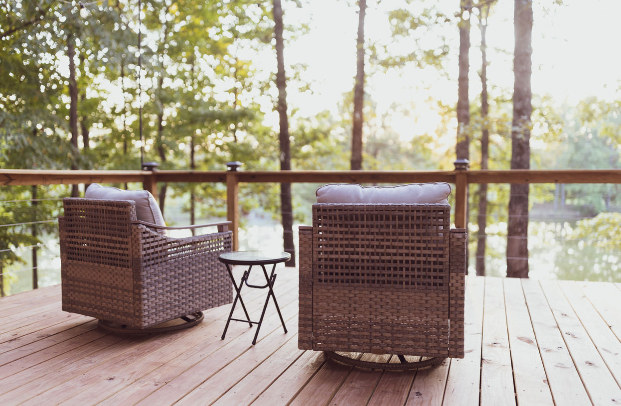 Relax in a beautifully appointed safari-style tent featuring a large wrap-around deck perfect for enjoying morning coffee or evening sunsets. The elegant, comfortable interior blends rustic charm with modern comfort to ensure a restful stay.